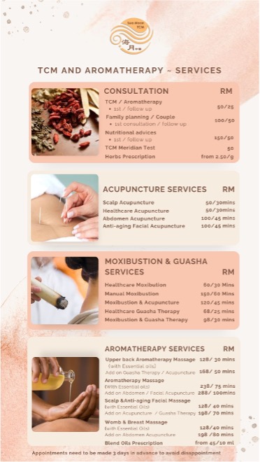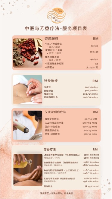 Moxibustion Therapy offer healthcare moxibustion, manual moxibustion, gynecological moxibustion, postpartum recovery moxibustion, chronic condition moxibustion, and combined therapy treatments.